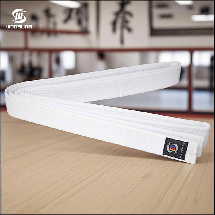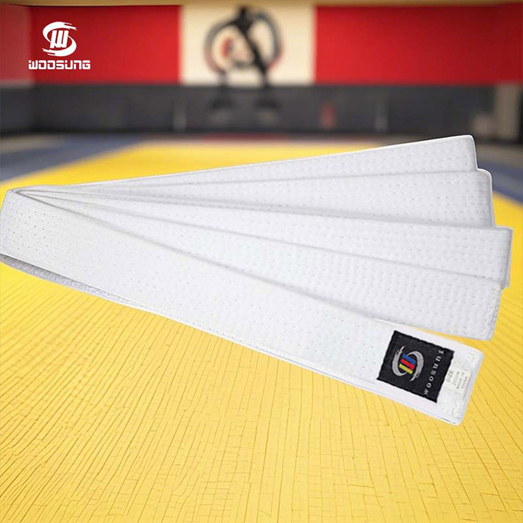 WOOSUNG Karate White Belt symboliserer begynderes ydmyghed og ubegrænsede potentiale. Dette hvide bælte er fremstillet af WOOSUNG-mærkefabrikken, som har en baggrund i at levere udstyr til OL, ved at bruge højkvalitets naturlige bomuldsfibre og traditionelle flerrækkede forstærkede syninger.